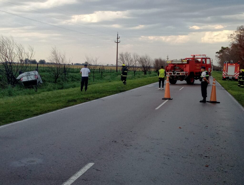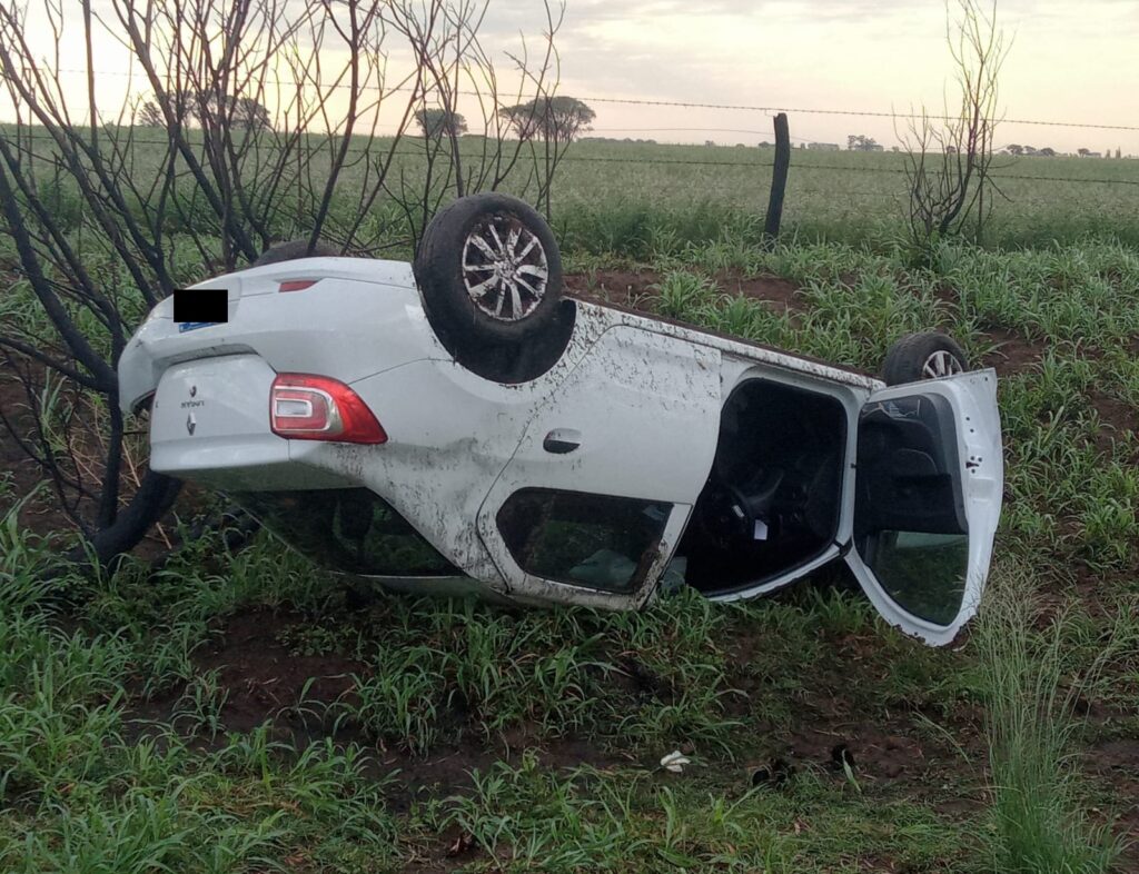Un automóvil Renault Logan volcó en la Ruta Provincial 9, a 10 kilómetros hacia el norte de Parera.
