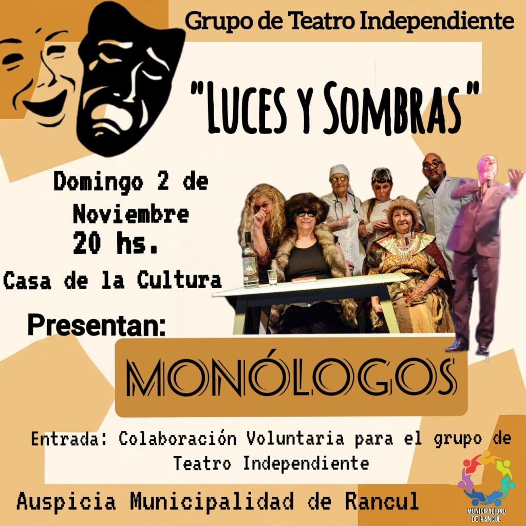 El grupo de teatro independiente «Luces y Sombras» hará su primera presentación este próximo fin de semana en Rancul. El grupo presentará diferentes monólogos que ofrecerán un espectáculo dinámico, divertido y novedoso para la oferta cultural de Rancul.