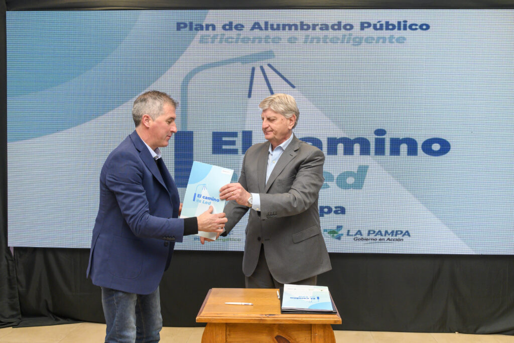Durante su estadía en Macachín Ziliotto firmó convenios con intendentes de nueve localidades para proveerlas de 1.599 luminarias LED.