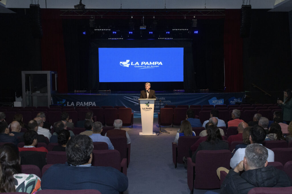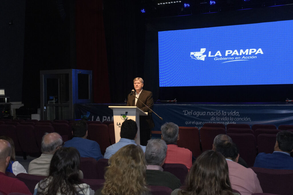 El gobernador Sergio Ziliotto encabezó en el Centro Cultural MEDASUR de Santa Rosa un encuentro con intendentes, intendentas y presidentes de Comisiones de Fomento de La Pampa para darle detalles de la reglamentación de la nueva Ley de Coparticipación provincial que entrará en vigencia en 2024. En ese contexto, advirtió el riesgo que significaría para las finanzas de La Pampa y de cada uno de los municipios y comisiones de fomento la posibilidad de que el 10 de diciembre próximo asuma en Nación un presidente que anuncia la eliminación de la obra pública y la coparticipación federal.