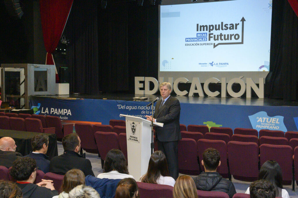 El gobernador Sergio Ziliotto encabezó este martes, en el Auditorio del Centro Cultural MEDASUR, la presentación del programa de becas provinciales Impulsar Futuro. La iniciativa está destinada a que estudiantes secundarios de La Pampa puedan continuar sus estudios en carreras de la Universidad Nacional de La Pampa (UNLPam) o en Institutos Superiores de Formación Docente.