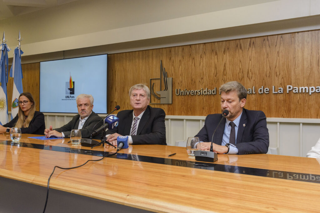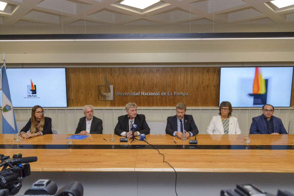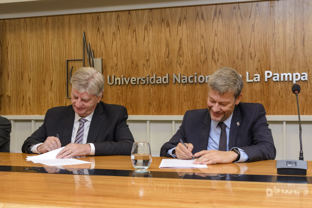 Además de firmar el convenio por la implementación del boleto estudiantil gratuito, el Gobernador suscribió con el rector Oscar Alpa otro importante acuerdo en el marco de la soberanía hídrica pampeana. En este caso, “para fortalecer la posición política de La Pampa y defender con más elementos y con mayor firmeza su posición”, dijo.